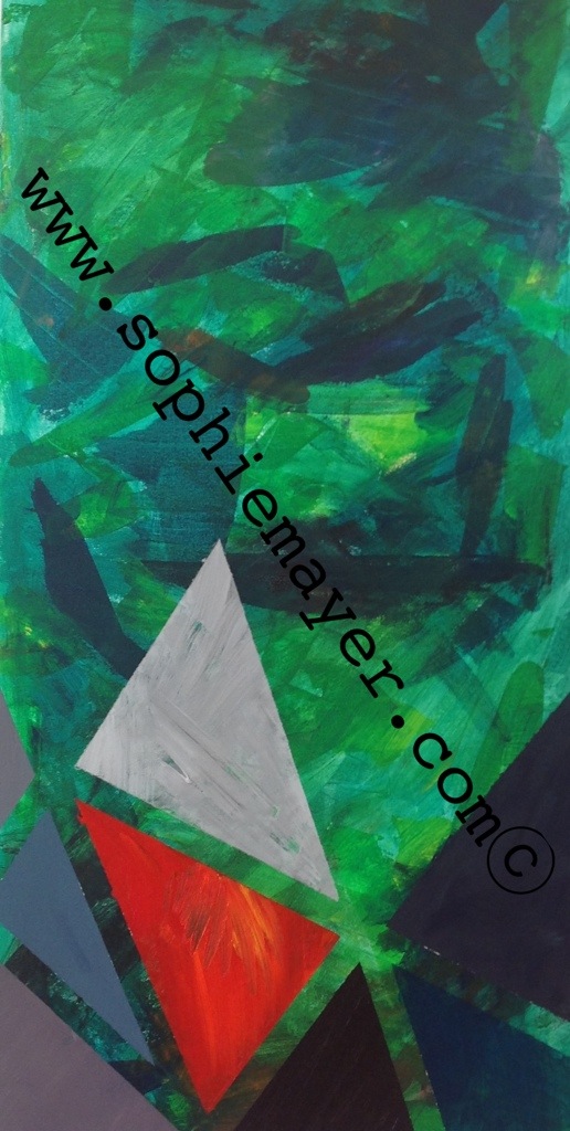 The abstract series uses “rules”, always with 3 parts. I start with expressive mark making, trying to be free and unedited in working through an idea, or emotion. The second layer is about control emotions, forcing order, and form. The paintings are varnished.